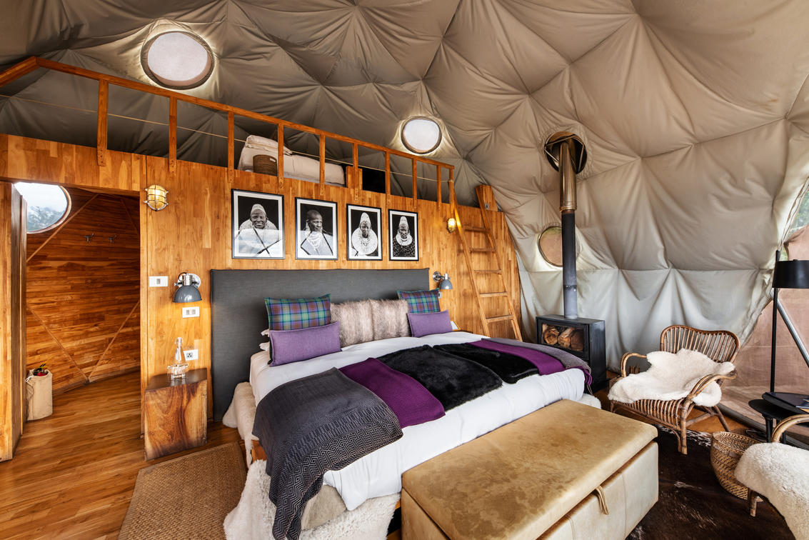 Highlands ma szesc duzych, luksusowych namiotów dla gosci z fantastycznymi widokami rozciagajacymi sie na góry Gola. Kopuly maja mozliwosc bycia blizniakami lub podwójnymi z kilkoma majacymi antresole dostepna na trzecim lózku. Wszystkie namioty wyposazone sa w lózka typu king-size, lazienke z oddzielna toaleta i dwuglowa kabina prysznicowa. W kazdym namiocie znajduje sie kominek opalany drewnem oraz mnóstwo przytulnych koców i dywanów zapewniajacych cieplo w chlodniejszych miesiacach.