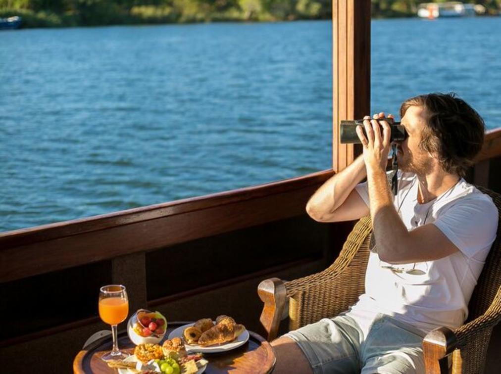 Desfrute de café acabado de fazer e de um café da manhã continental enquanto navega pelo rio Zambezi em direção à Ilha de Kandahar, enquanto desfruta dos sons da diversidade de aves e do mato africano ganham vida no início da manhã. O pequeno-almoço inclui pedaços de pão e pastelaria acabados de fazer, pratos de frutas frescas, compotas, iogurtes e queijos, bem como uma variedade de chás e café.