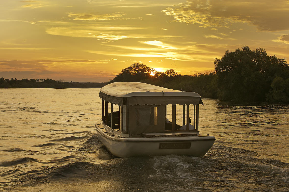 Simplesmente não há uma maneira melhor de desfrutar do deslumbrante pôr do sol africano do que do conforto de um barco Ra-Ikane em um cruzeiro ao pôr do sol no rio Zambeze. Nosso cruzeiro ao pôr-do-sol sempre popular oferece uma maneira única de explorar os canais do rio e ter uma vista de perto do deserto imaculado e do jogo africano ao longo de suas margens. Desfrute de uma variedade de canapés, um bar completo e uma equipe encantadora que pode transmitir um pouco de história interessante Victoria Falls com você a bordo do Ra-Ikane.