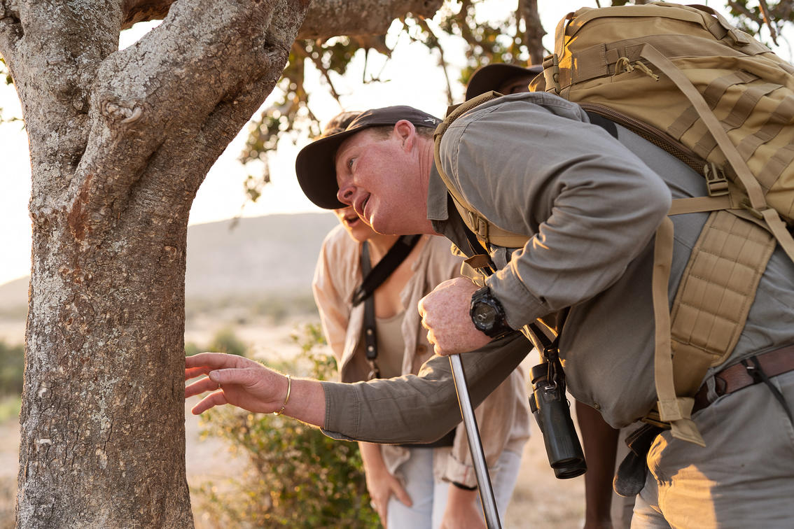 Entre as viagens de jogo, dê uma olhada nas sutis e invisíveis maravilhas do arbusto em uma caminhada tranquila ao alcance do seu alojamento. As moitas densas de euforbia são melhor exploradas a pé, revelando um mundo secreto de líquen, musgos e samambaias. Várias aves de rapina e outras espécies ninho nas árvores mais altas ou no dossel espinhoso. Um guarda florestal armado orienta os hóspedes através de avistamentos “de perto e pessoais” de várias espécies de antílopes, girafa, javali ou zebra. Não é adequado para crianças com menos de 12 anos de idade.