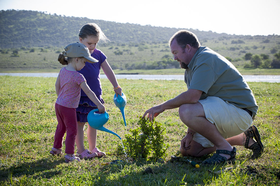 As famílias também podem participar das atividades de voluntariado de Kwandwe através do Ubunye da reserva