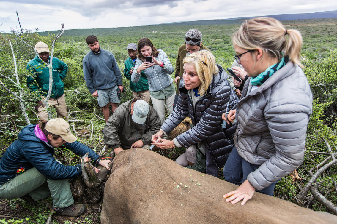 Um safari recomendado de três noites e quatro dias oferece-lhe a oportunidade de participar no emocionante programa de rinocerontes e entalhes de Kwandwe. Sob a supervisão de especialistas, o rinoceronte é atirado para plantar microchips nos chifres e realizar entalhes auriculares para identificação futura - uma tarefa essencial para garantir a preservação desta espécie ameaçada.