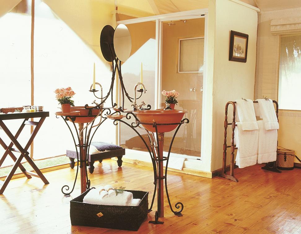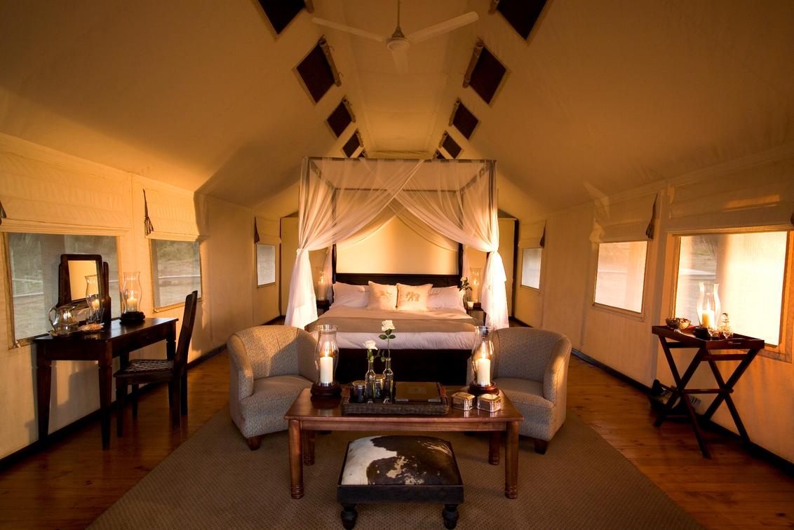 Nossas tendas luxuosas e espaçosas lembram a era dourada do safari no início de 1900. Cada tenda de luxo tem uma casa de banho privativa com chuveiro, uma área de relaxamento interior e um deque privado com vistas panorâmicas sobre as planícies da savana.