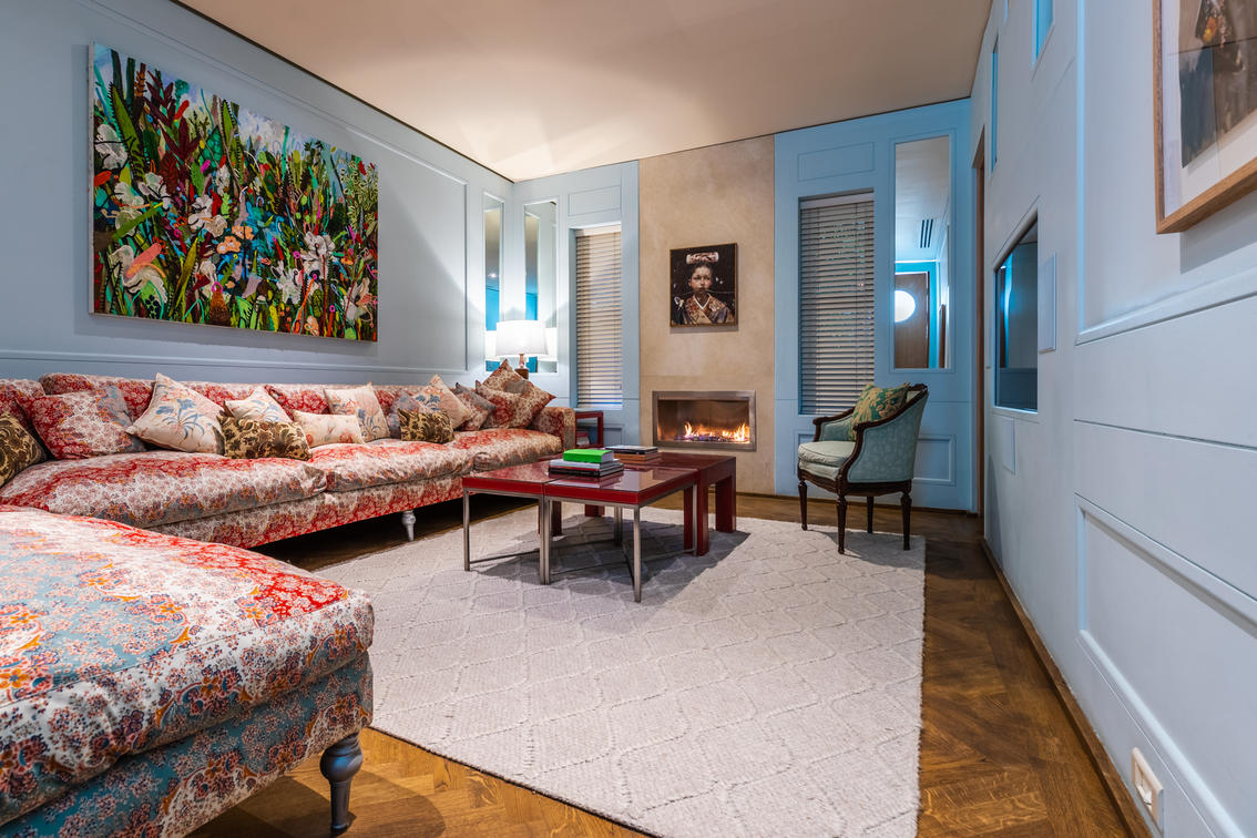 Decoração minimalista sofisticada e uma impressionante coleção de arte original são as principais características das áreas de estar, incluindo um escritório, sala de TV, sala de jantar e área de entretenimento. A cozinha contemporânea de aço inoxidável tem uma copa separada e uma câmara fria bem abastecida. Um chef pessoal está de plantão para preparar café da manhã, almoço, lanches e jantar. A ênfase está em ingredientes frescos, de origem local e sazonais. Quaisquer necessidades ou restrições alimentares, alergias alimentares ou refeições infantis podem ser atendidas pelo chef.