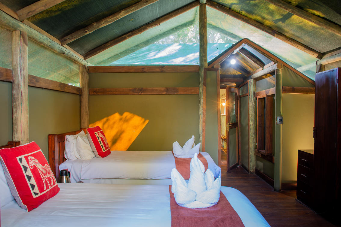 A unidade familiar inclui quarto duplo com banheiro privativo, segundo quarto duplo separado, cada um com seu próprio banheiro privativo. A idade mínima é de seis anos. Famílias que viajam com crianças de 6 a 12 anos devem reservar atividades privadas. Crianças menores de 12 anos não são permitidas em viagens de mokoro ou caminhadas guiadas.