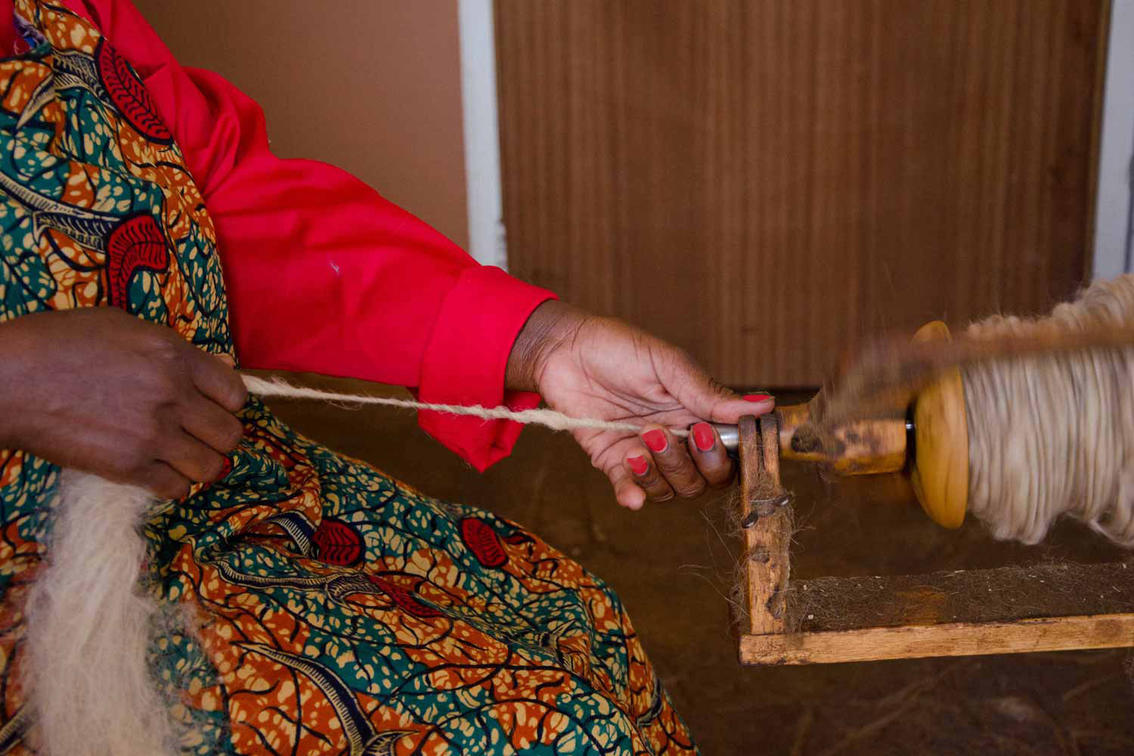 Nos estúdios, você pode assistir tecelões nativos na produção de tapetes. A lã de ovelha Swakara tingida à mão é usada.