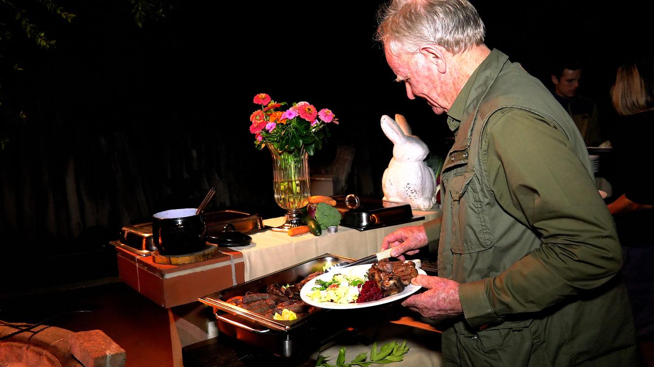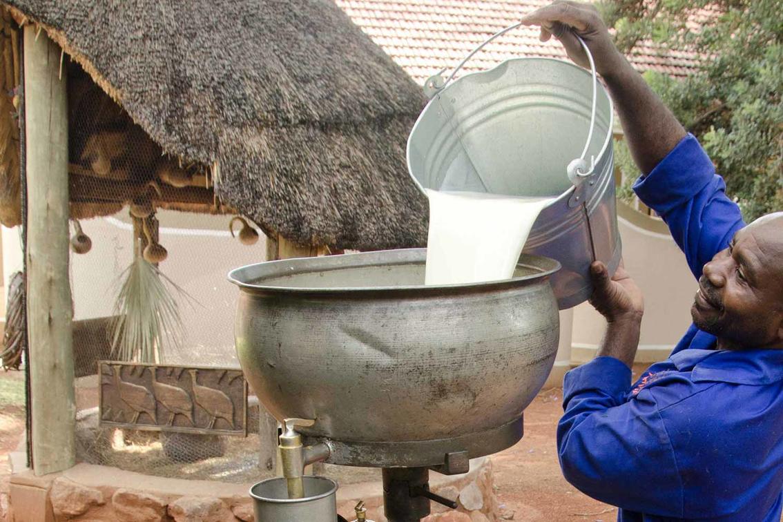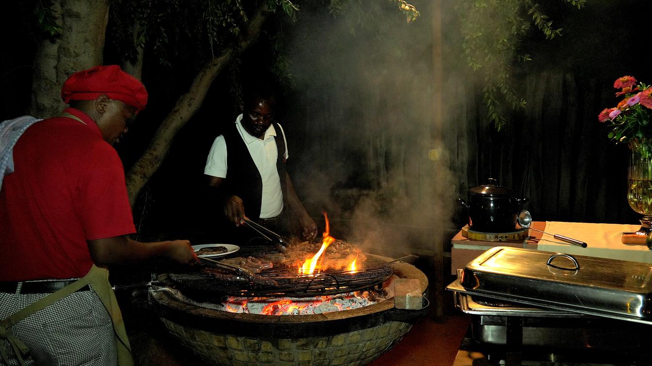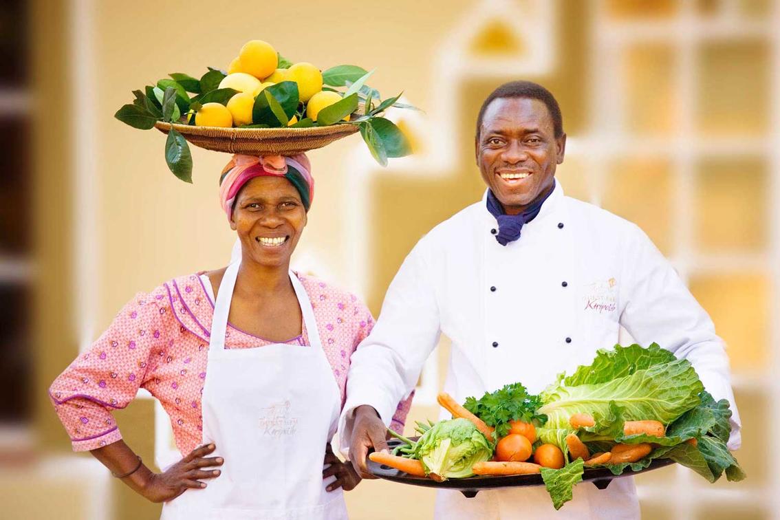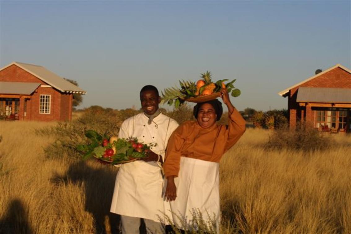 Na preparação das nossas refeições, tentamos minimizar a pegada de carbono sempre que possível. A maioria dos ingredientes perecíveis são cultivados em casa em nossa horta, citrinos e reserva de caça. Estes incluem leite fresco diário e creme de nossas vacas, ovas de nossas galinhas rebeldes, livres, ervas e vegetais da nossa horta e carne da vida selvagem (garantida sem antibióticos). De todos estes ingredientes naturais, os nossos cozinheiros criam deliciosas refeições que são uma fusão de cozinhas tradicionais da Namíbia, continental e europeia.