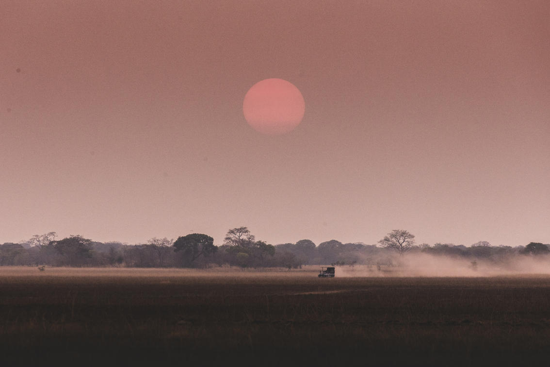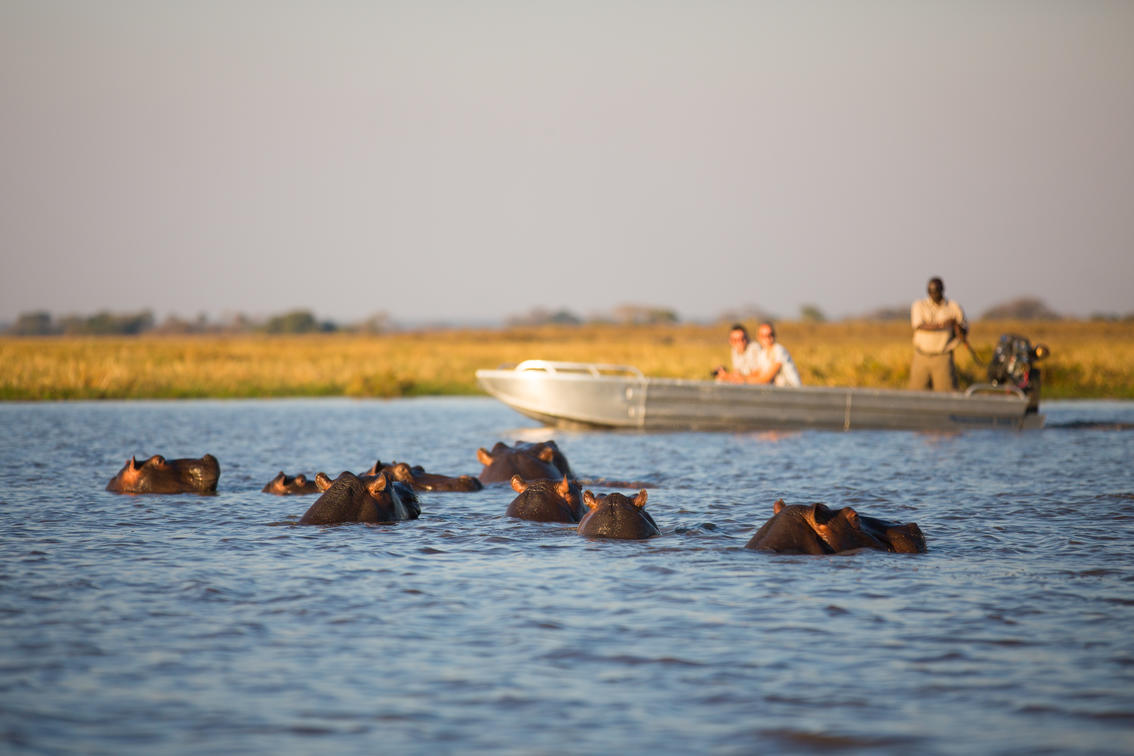 No início da temporada, as planícies de Busanga ainda são amplamente cobertas por água, permitindo a exploração dos canais e sua vida de barco.