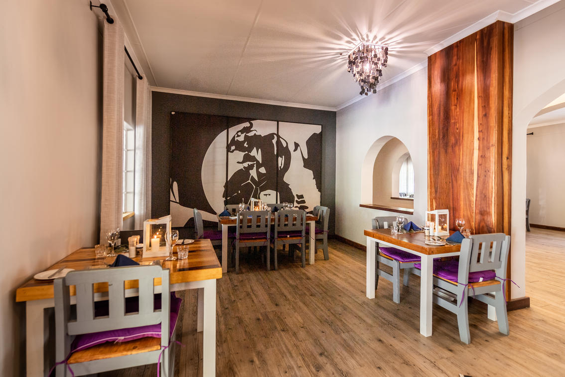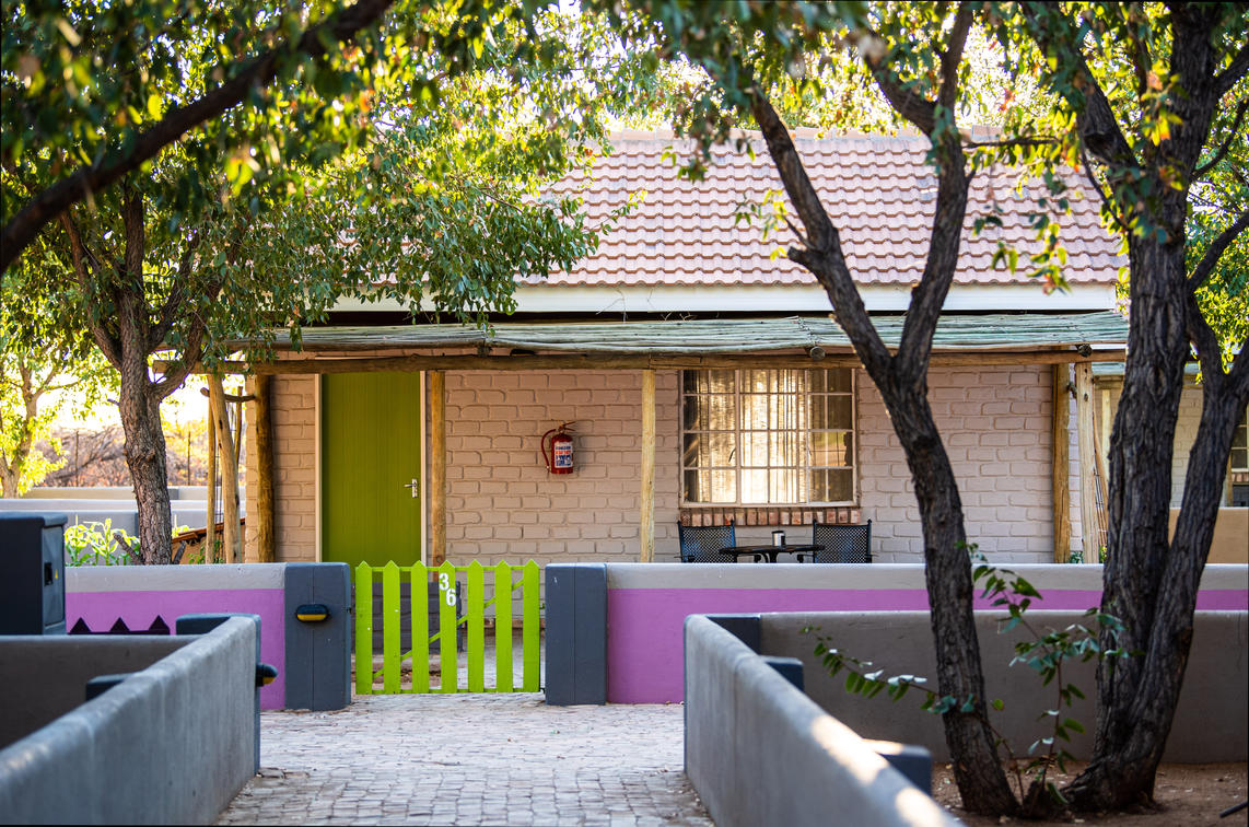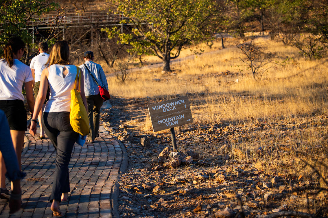 As if an African kingdom of old, Damara Mopane Lodge is constructed in a semi-circle of interlinking pathways leading to a lavish swimming pool at its centre.