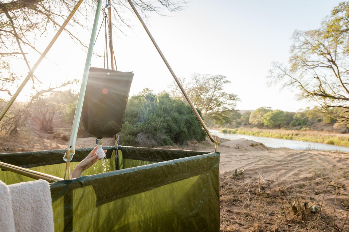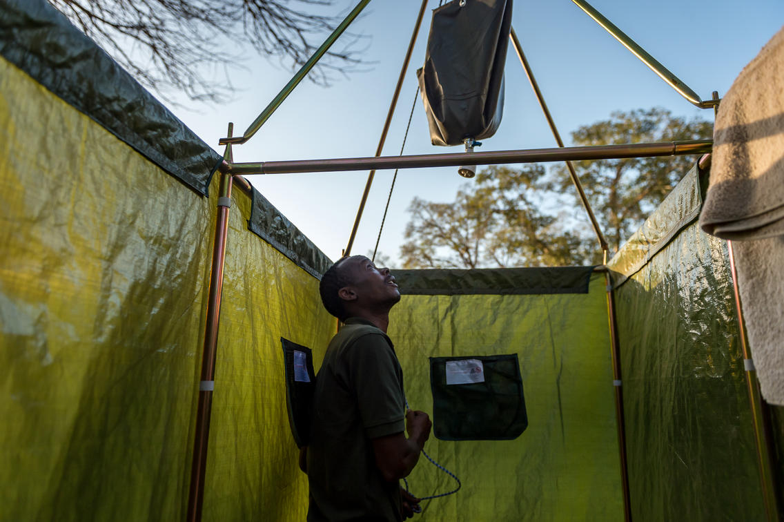 Cada tenda cúpula tem seu próprio chuveiro balde privado
