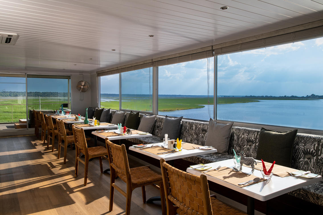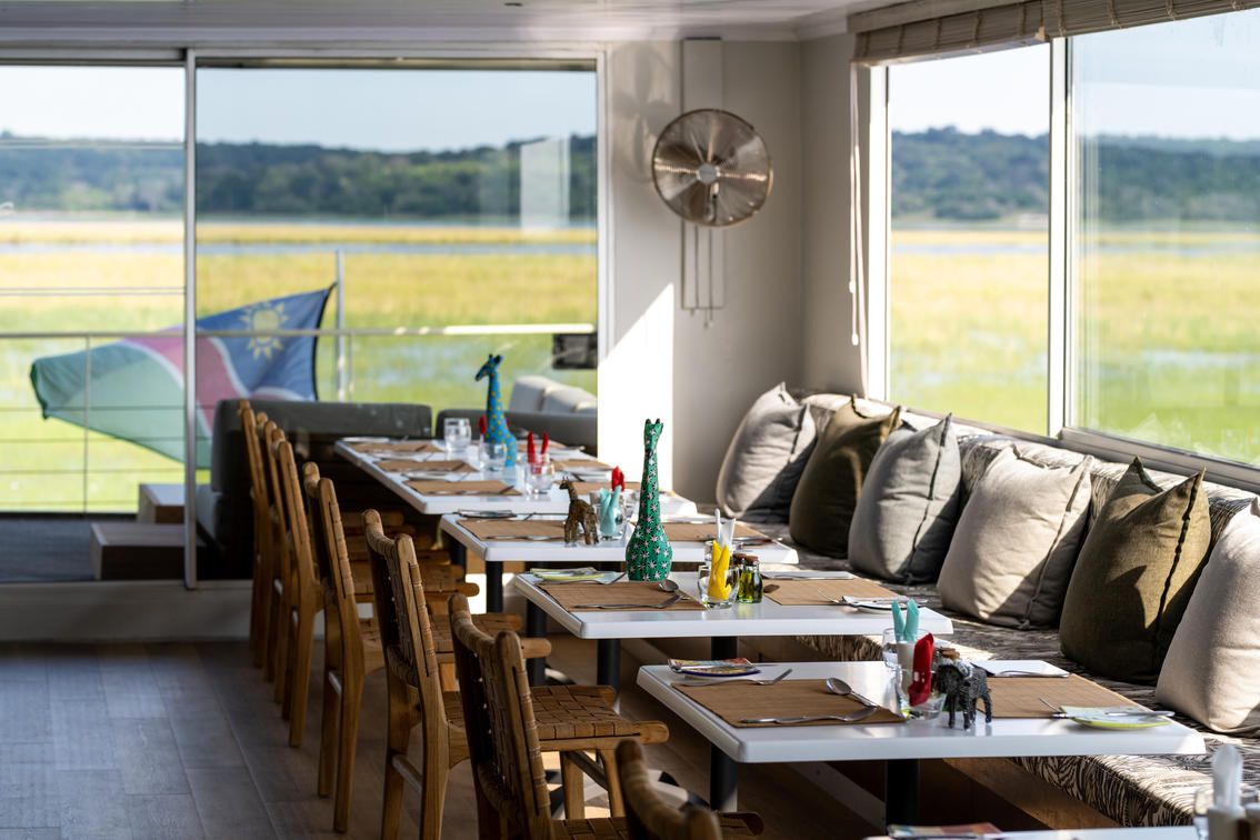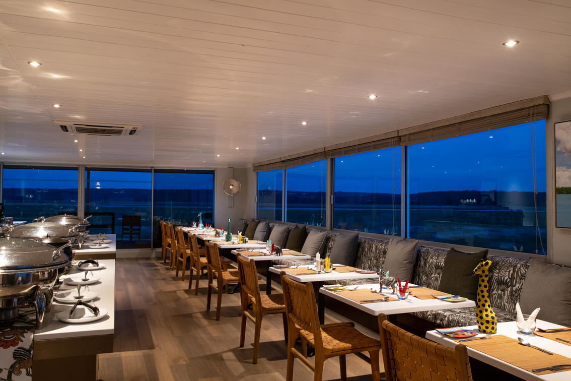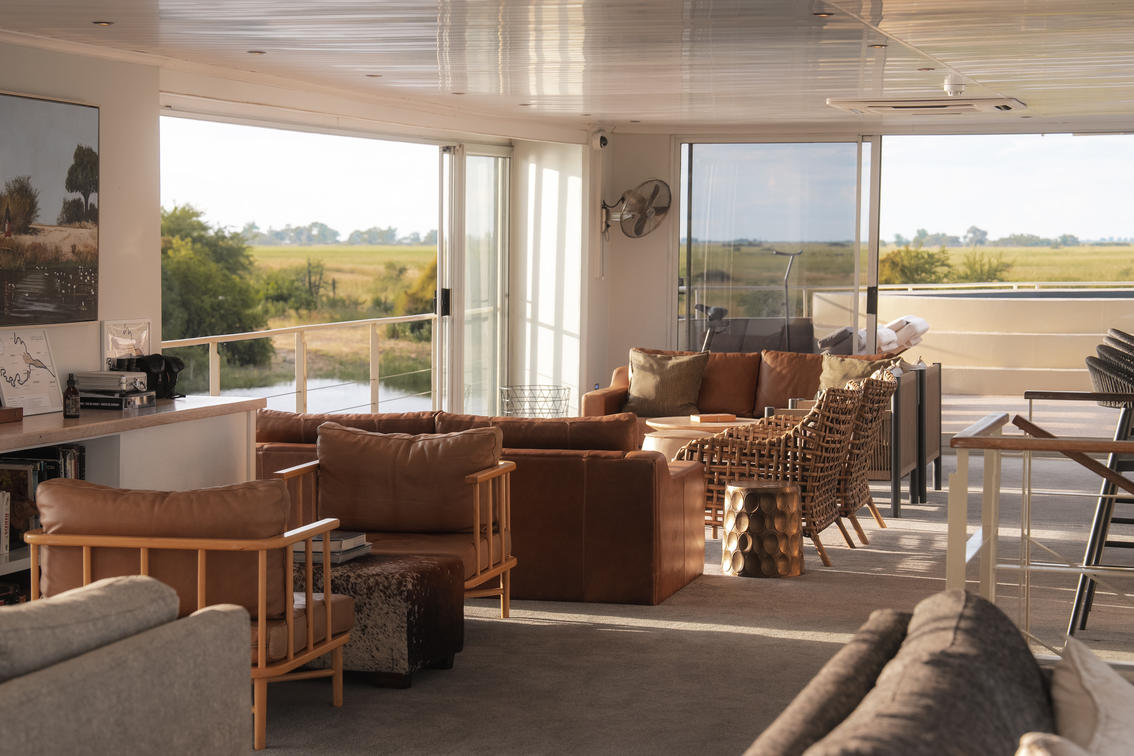 For the best views, join us on the upper deck. Find a spot to relax in the lounge, on the bow or stern - each area offers a spectacular view of the Chobe River and unobstructed views of the unique African landscape, through the large floor to ceiling glass sliding doors.