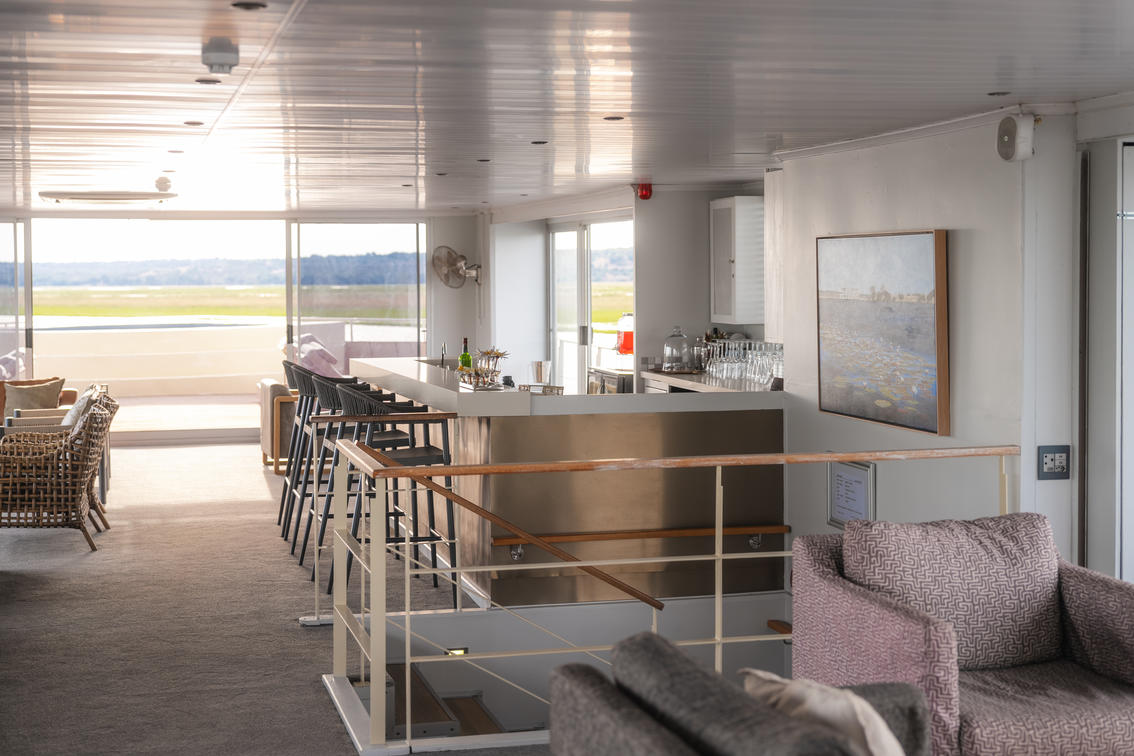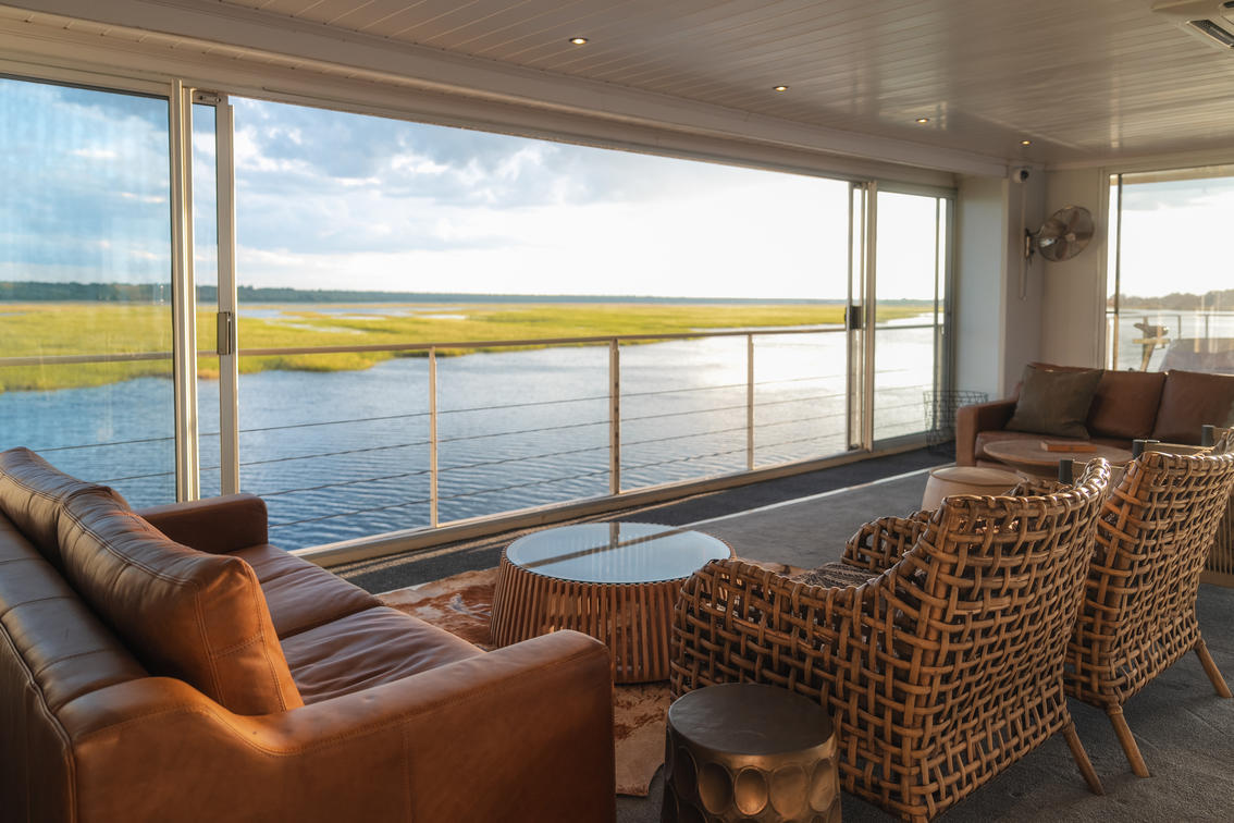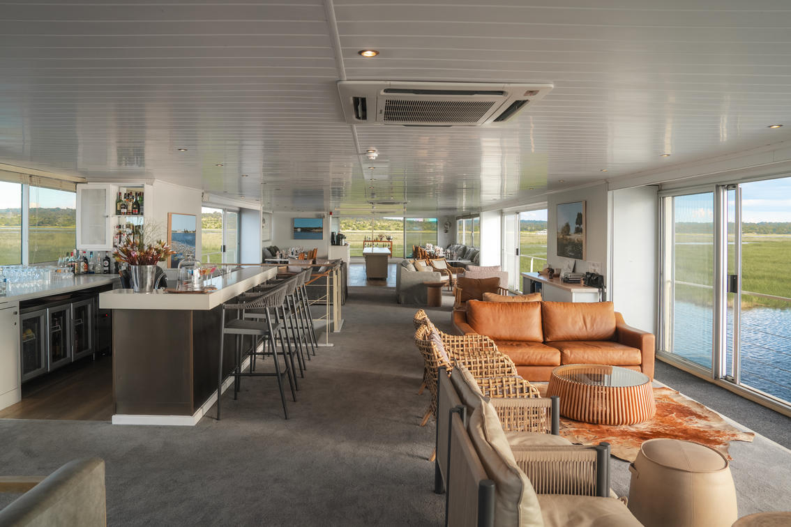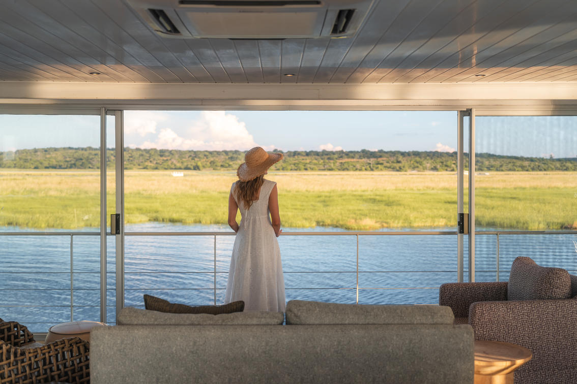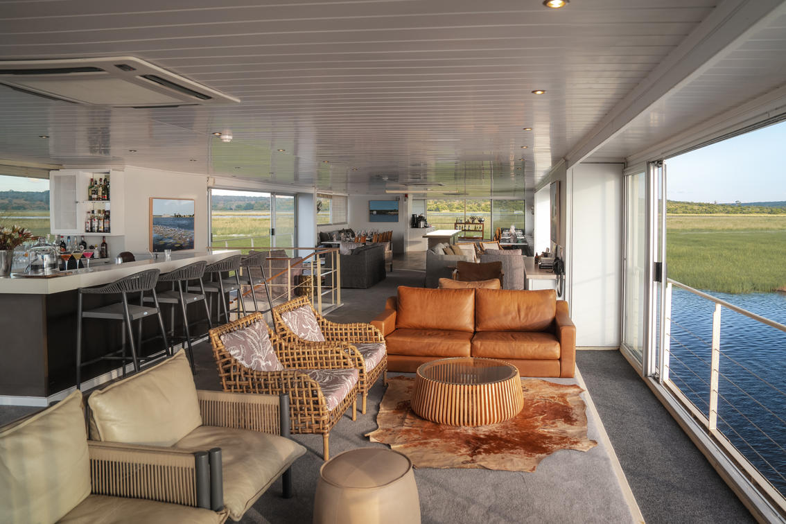 For the best views, join us on the upper deck. Find a spot to relax in the lounge, on the bow or stern - each area offers a spectacular view of the Chobe River and unobstructed views of the unique African landscape, through the large floor to ceiling glass sliding doors.