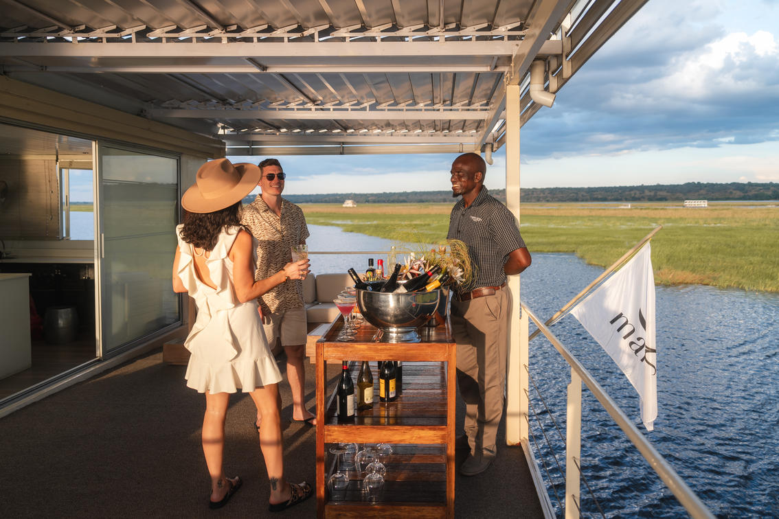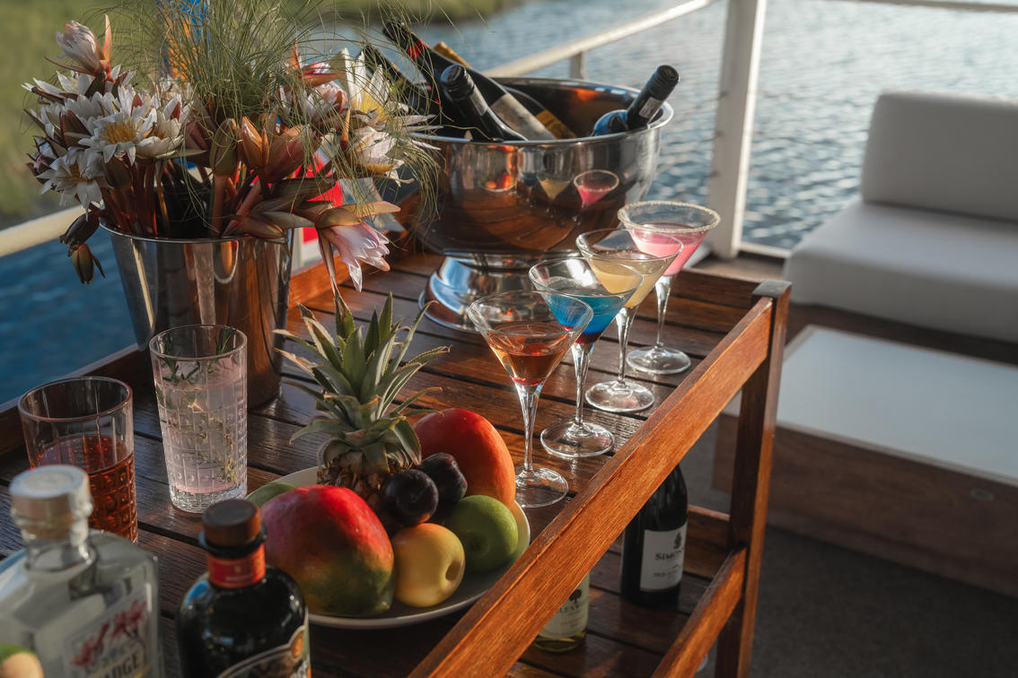 Golden hour and beyond, settle in as the sun dips beneath the Chobes’ horizon. Enjoy a selection of Southern Africa’s finest wines, a delicious cocktail mixed with precision and flare, or an ice-cold lager served with the friendliest smile and snacks.
