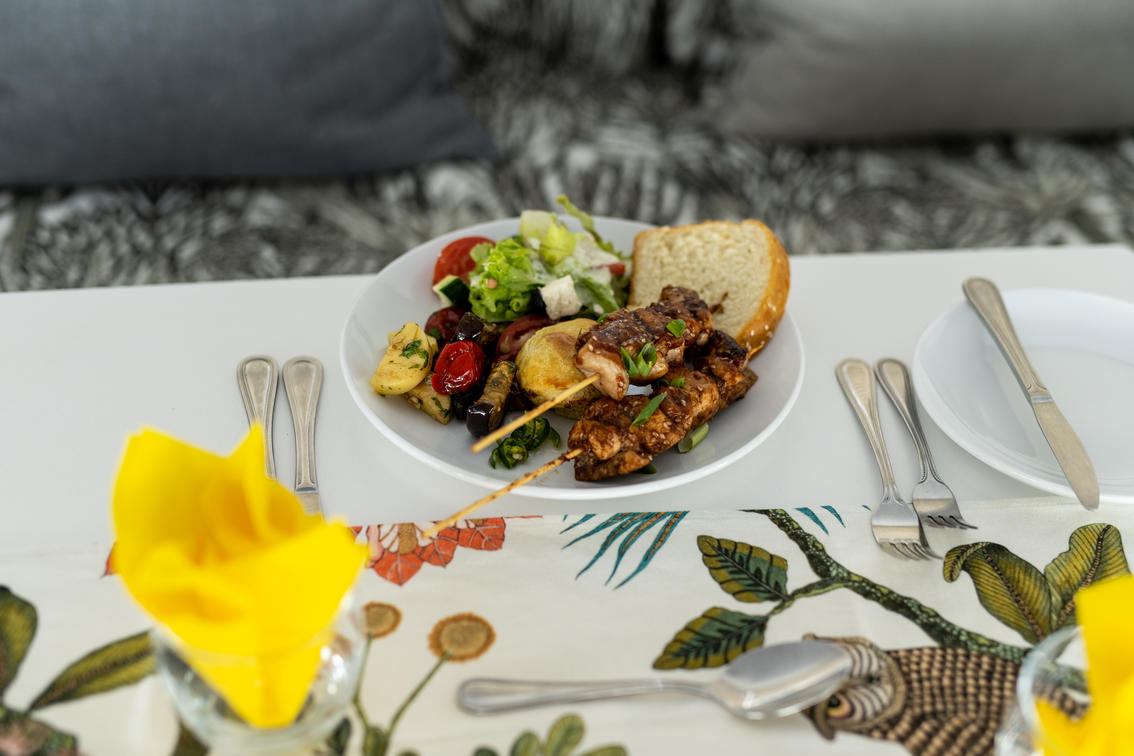 Our dining room offers a peaceful corner to share an intimate dinner, or gather to share tales over culinary dishes. Enjoy three hearty meals a day, starting with a continental or cooked breakfast. Indulge in a buffet lunch and end the day with a four-course plated dinner, complemented by drinks and light snacks in between.