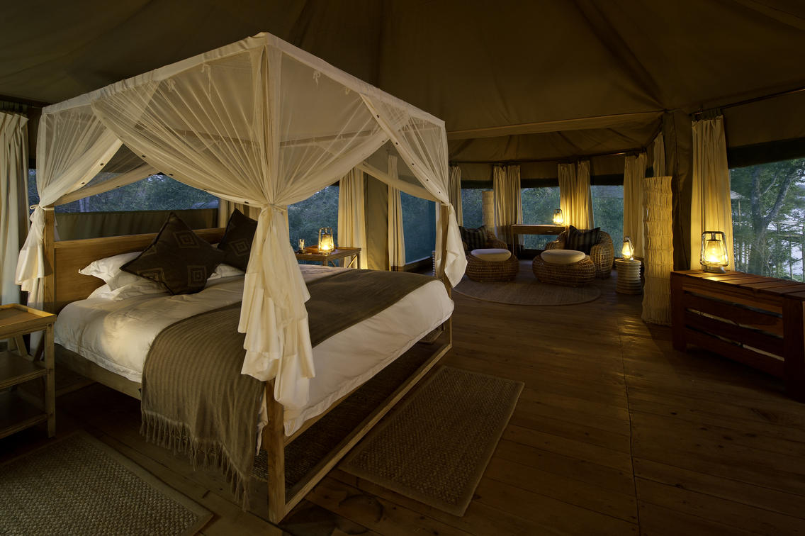 Raised on a wooden decking, Chindeni’s 4 en-suite magnificent canvas tents have private decks from which one can view the resident big game often in attendance, or simply enjoy the extensive birdlife and serenity of the camp and lagoon. The tents are the most spacious in the Luangwa, each with two queen-sized beds or one king bed, shower, toilet and double vanities. The dining area is on stilts above the oxbow lagoon with an adjoining lounge area for relaxing in the open air. Guests have been known to stay in camp during hot October days and see more from the deck than on a drive!
