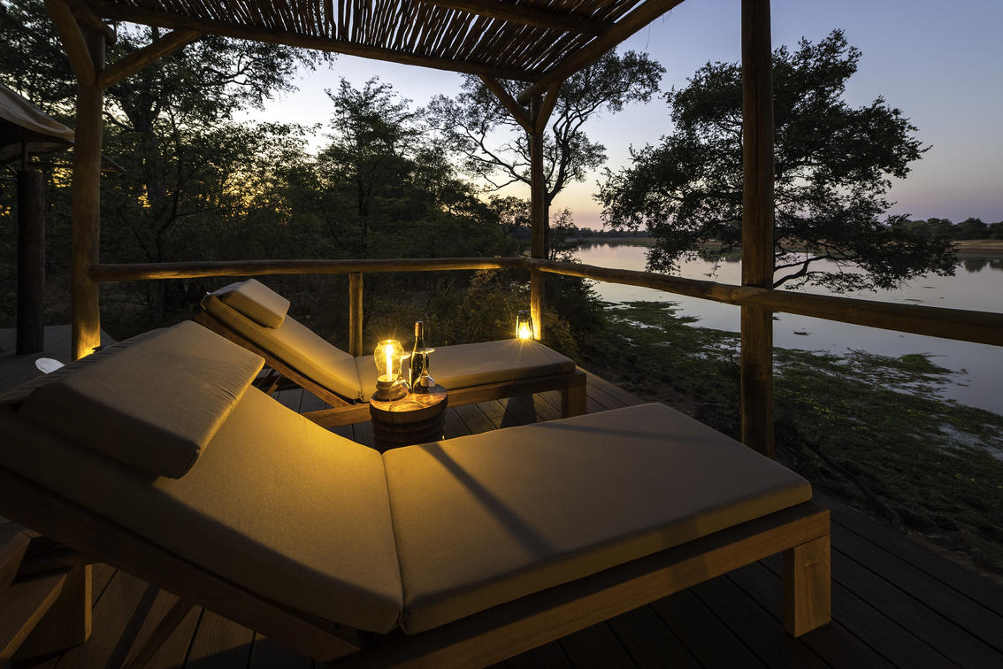 Chindeni's spacious tents sit high in the trees, and each has a spectacular view of the permanent oxbow lagoon and the Chindeni hills in the distance. Each has a large sitting area and veranda with hammocks.