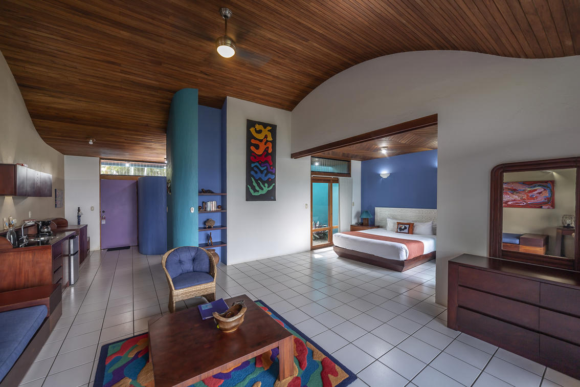 Approximately 735 sq. ft. (68.28 sq meters) in buildings of 4 villas feature a sleeping alcove with a king bed, and a sofa/bed in the main area.