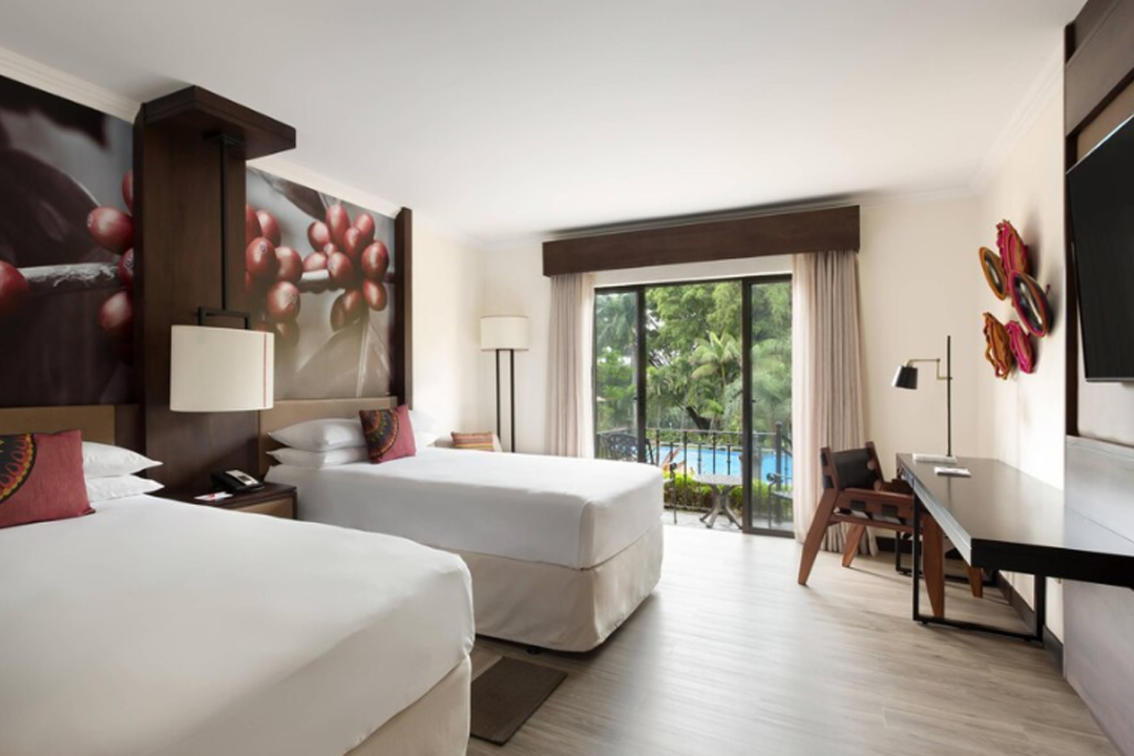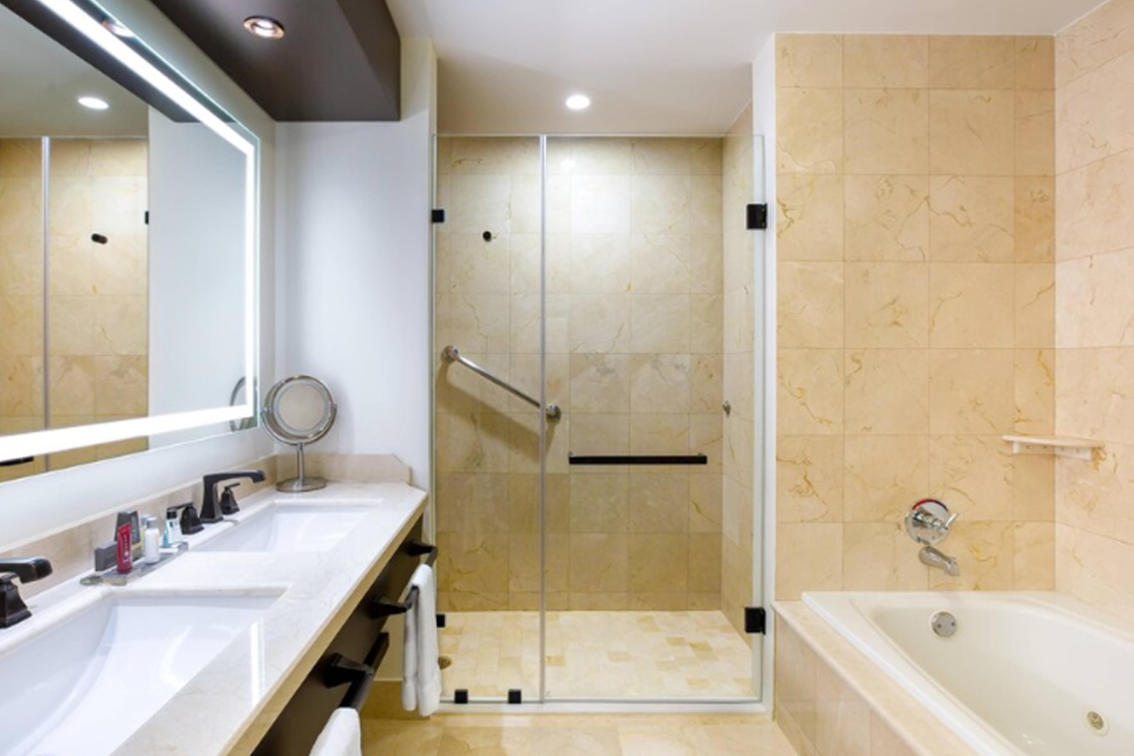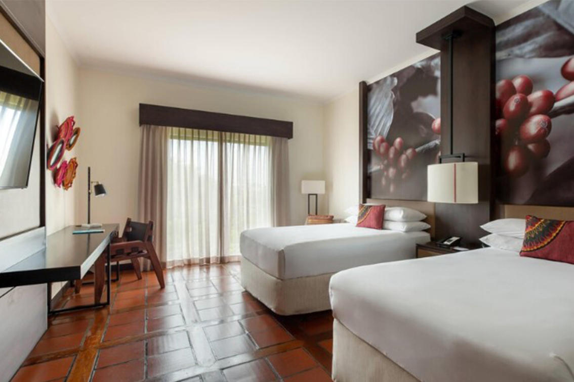 Enjoy your stay in our newly designed double bed guest room. Stay nestled in plush bedding while you enjoy stunning mountain views from the comfort of your room. After a long day of work or sightseeing in San Jose, take a long, refreshing shower in your upgraded glass shower stall.
