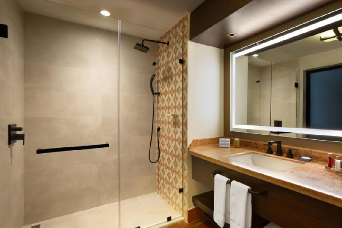 Relax in the spacious living room in your master suite. Wake up to breathtaking views of the San Jose skyline and mountains from our guest rooms. Get ready to start your day at your deluxe bathroom featuring all the bath amenities you need, including ample counter space, a roomy walk-in shower, and plush cotton towels.
