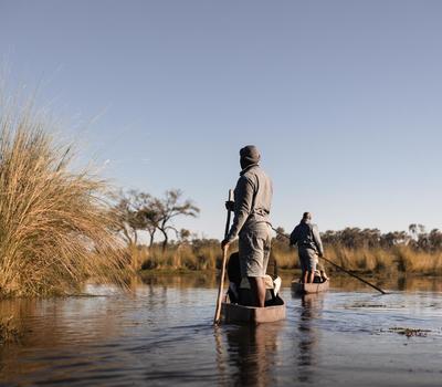 The tented suites are a striking contrast of eco-chic styling within this classic Okavango Delta setting.