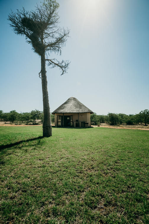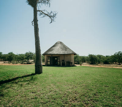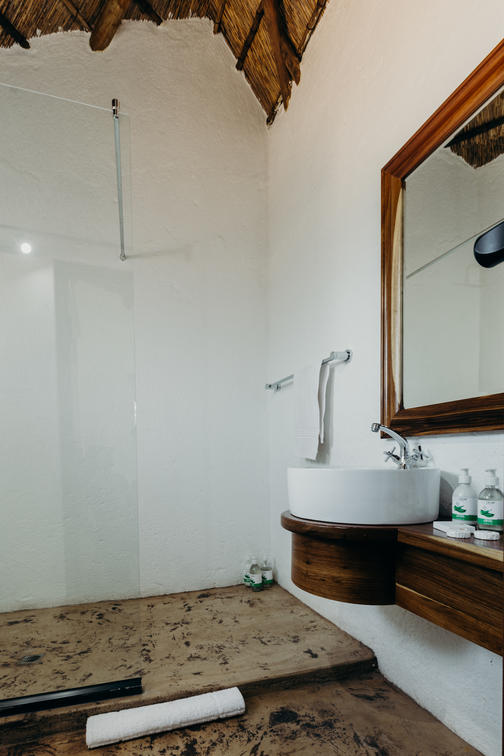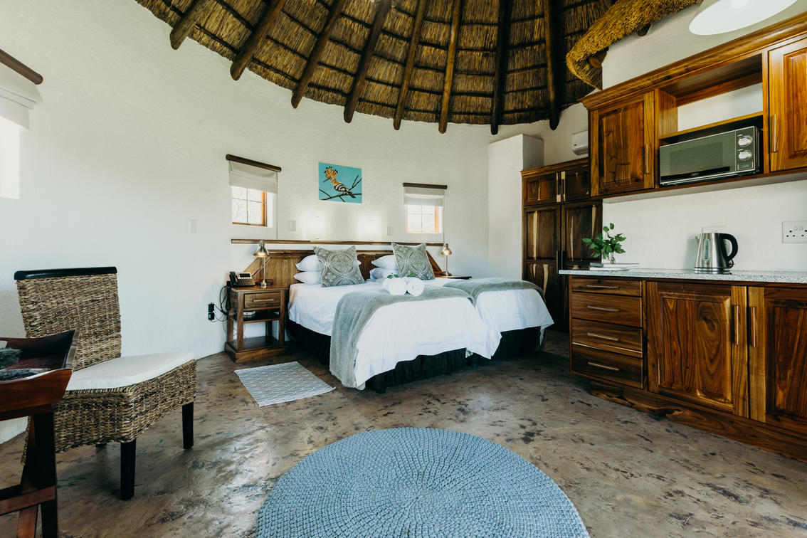 All units are traditional thatched rondavels, thoughtfully designed to blend with the natural environment while offering modern comforts. Each chalet features air-conditioning, tea and coffee facilities, a small in-room safe, hairdryer, and a dressing table with mirror, along with a patio for relaxed outdoor living.