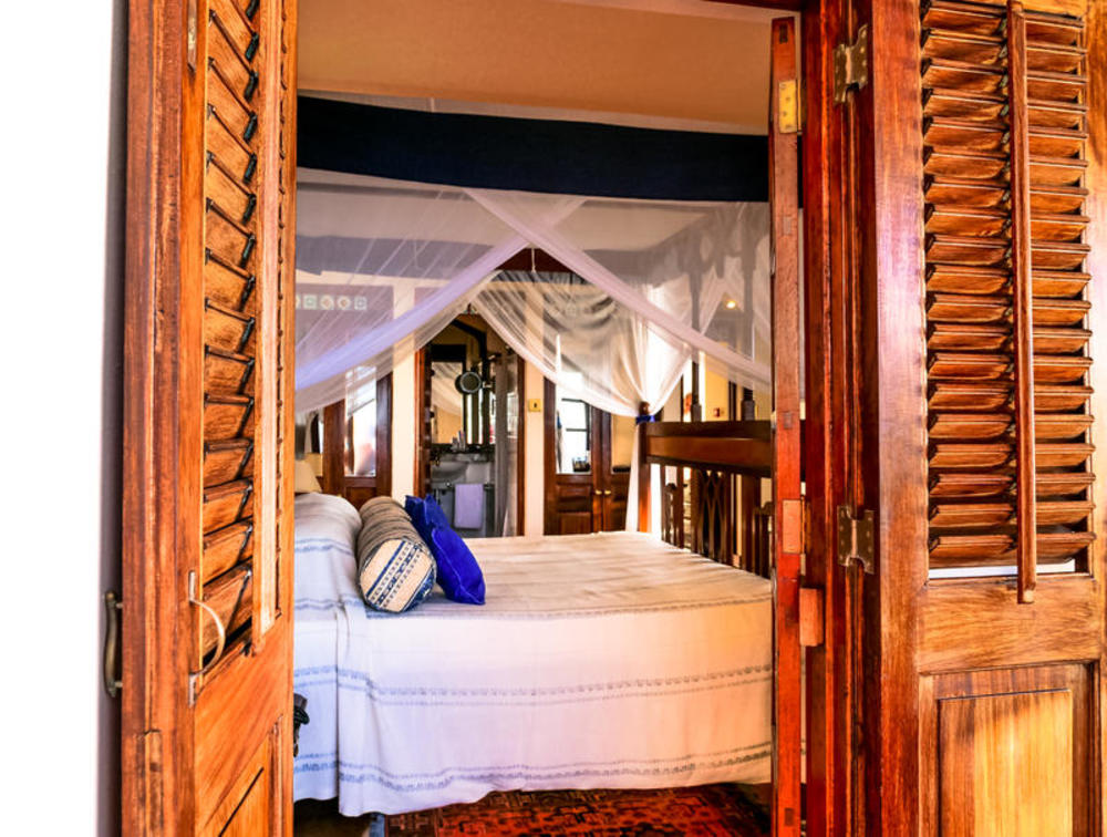 Våra exceptionellt rymliga Prime-rum presenteras i traditionell swahili-stil med traditionella nischer, fretwork-skåp och färgglada mjuka möbler i kustbomull i kallt blått. Himmelssängarna är draperade i myggnät och är generöst king size-sängar.