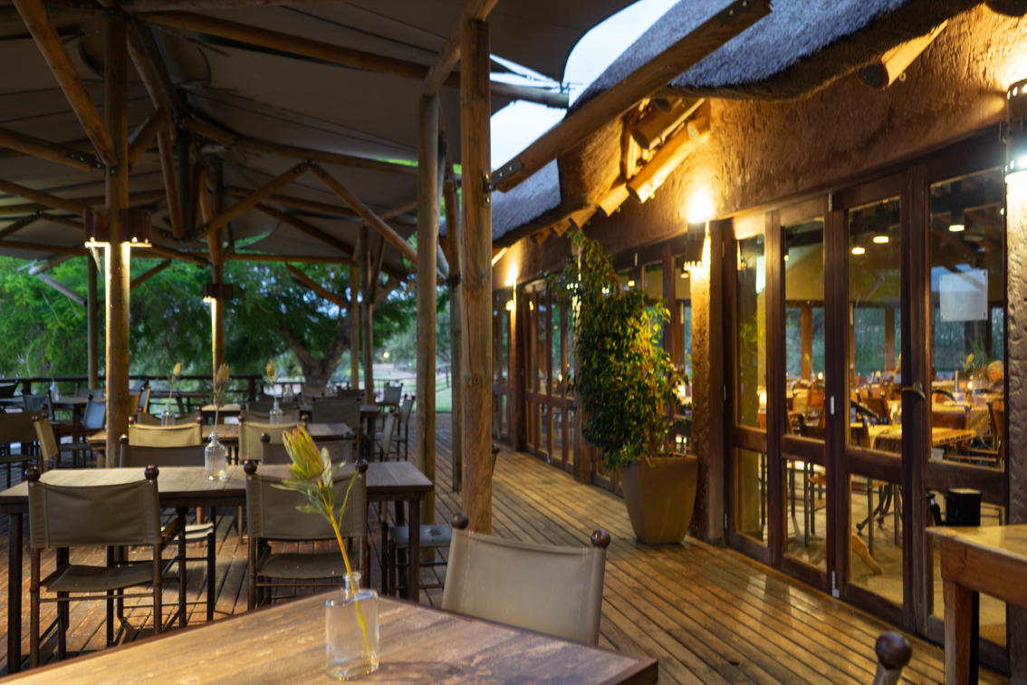 Our restaurant also expands to the wooden deck, overlooking our 5ha waterhole filled with big fish, turtles and hippo.  If you are lucky, you might even spot the elephants and other game on the opposite bank.