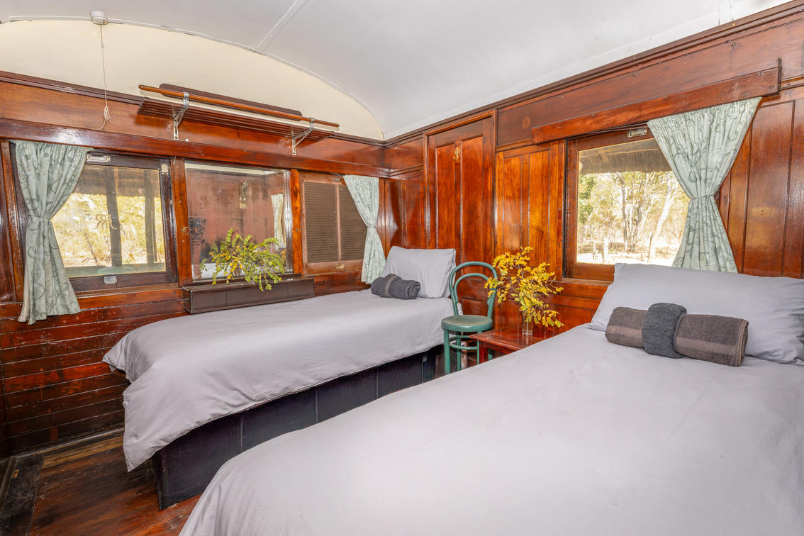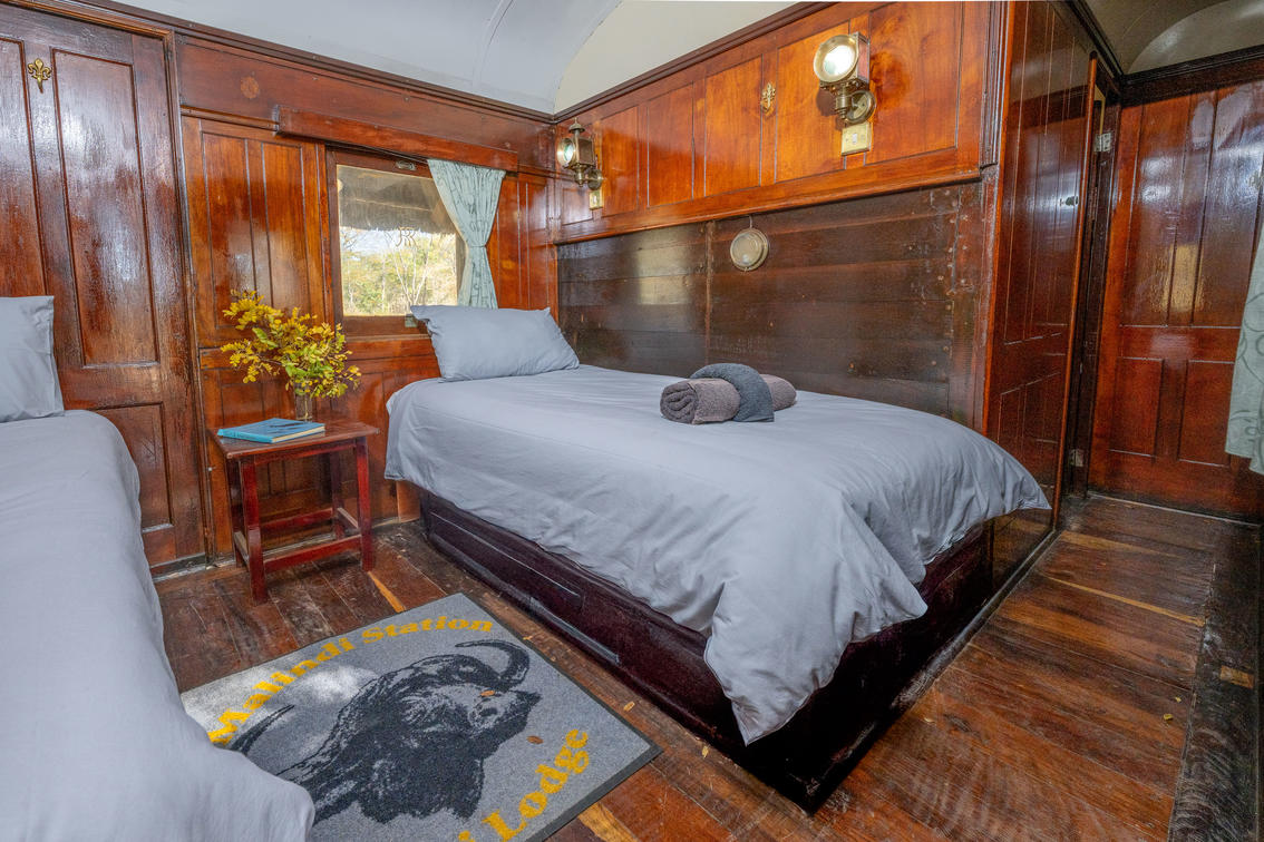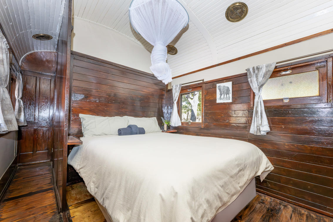 The camp’s centrepiece is a striking collection of six beautifully restored railway carriages, each thoughtfully reimagined to blend vintage flair with contemporary luxury. Complete with private ensuites, the carriages transport you to an era of romance and refined adventure—while grounded in the raw, majestic beauty of Zimbabwe’s bushveld.
