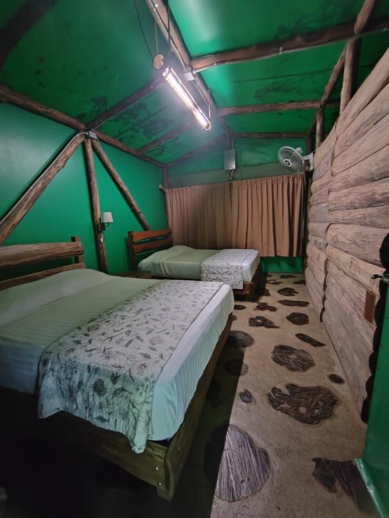 Each room has: two double bed, A/C, private bathroom with hot water, personal hygiene items, towels TV and Wifi