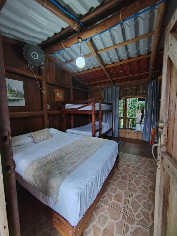 Each room has: two doubles, fan, private bathroom with hot water, toiletries, towels, TV, Wifi and views of the forest.