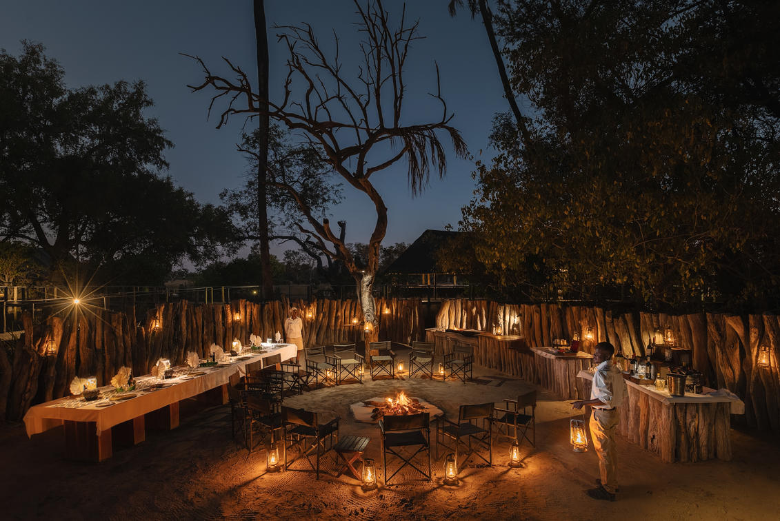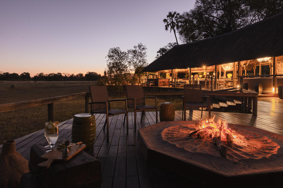 Pre-dinner drinks around the fire is an unmissable safari ritual.