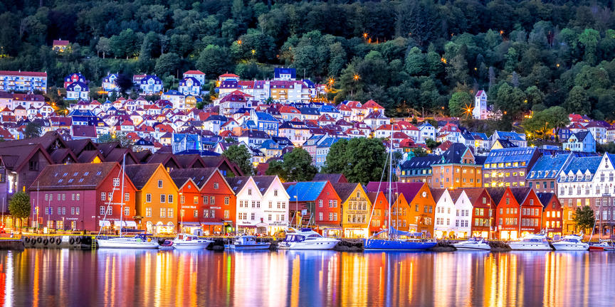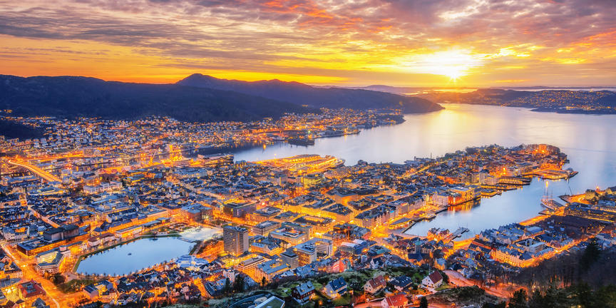 Bergen staat bekend als de ‘poort naar de fjorden’ en is een heerlijke, pittoreske stad, omringd door de fjorden van de westkust van Noorwegen en zeven spectaculaire beboste bergen. De landschappen bieden een ongelooflijk wonderland voor buitensporten; voor veel bezoekers is het hoogtepunt echter simpelweg dwalen door de smalle, geplaveide straatjes, wat drinken in de bruisende cafés, genieten van de uitstekende lokale gerechten en zich mengen met de vriendelijke lokale bevolking. Er is genoeg om geschiedenisliefhebbers in vervoering te brengen met een overvloed aan musea en rijen prachtig bewaard gebleven kleine houten Hanzehuizen die zijn geverfd in een reeks vrolijke kleuren. Met zijn dynamische culturele leven, uitstekend aanbod aan restaurants, indrukwekkende kunstgalerijen en bruisend nachtleven, is het bijna onmogelijk om niet verliefd te worden op deze betoverende ‘trebyen’ (houten stad).