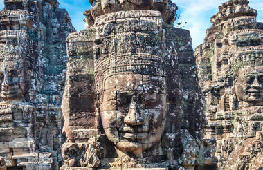 Salida en tuk-tuk para descubrir Angkor Thom: Bayon, terrazas reales y Ta Prohm, envuelto por raíces gigantes.