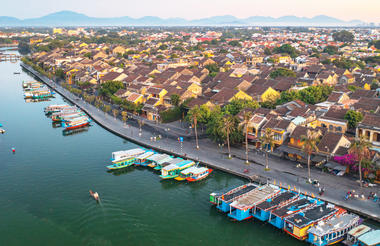 Traslado al aeropuerto de Hanói y vuelo a Da Nang. A la llegada, traslado a la encantadora ciudad de Hoi An. Al anochecer, paseo en barco por el río Hoai: farolillos de colores, luces reflejadas en el agua y deseos flotando crean una atmósfera inolvidable.