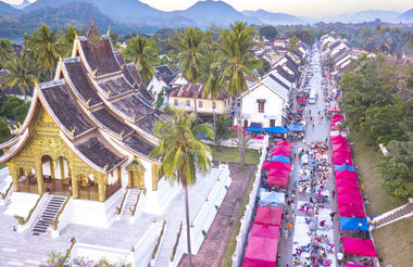 De madrugada, alrededor de las 05:30 h, salida para presenciar uno de los rituales más espirituales de Laos: la ceremonia de entrega de ofrendas a los monjes, quienes recorren las calles en silencio al amanecer. A continuación, visita del mercado matinal, donde los locales se abastecen de productos frescos.