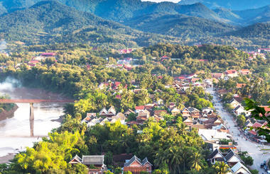 Llegada a Luang Prabang, joya patrimonial y considerada una de las ciudades mejor conservadas del Sudeste Asiático. Su atmósfera serena, su cuidada arquitectura colonial y su entorno natural privilegiado entre ríos y montañas la convierten en uno de los destinos más encantadores de Laos.