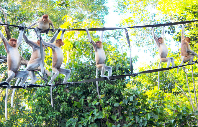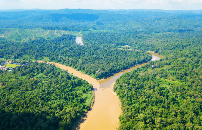 Un hito impresionante en el mapa de Borneo malasio, el río Kinabatanagan serpentea durante 560 kilómetros desde su nacimiento en el suroeste de Sabah en la vertiginosa Cordillera Crocker hasta su vasta desembocadura en el mar de Sulu. Es el río más largo del increíblemente pintoresco estado de Sabah y proporciona un ecosistema rico para una gran cantidad de vida silvestre. Un crucero en barco por el río es la mejor manera de explorar las exuberantes selvas tropicales, los lagos relucientes y la abundante vida silvestre de la región, con excursiones de un día y safaris acuáticos nocturnos que se ofrecen a los visitantes. La vida silvestre que se ve con regularidad incluye monos probóscide, orangutanes, cocodrilos, macacos, cálaos, delfines del Irrawaddy, búhos, civetas y, si tienes suerte, el elefante pigmeo de Borneo, en peligro de extinción.