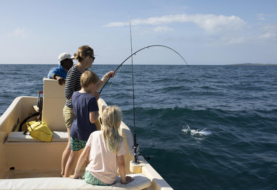 Manda bietet konventionelles Hochseefischen auf einem 33-Fuß-Sportfischerboot von Lochin an. Der Kapitän und die Crew haben auch Erfahrung im Fliegenfischen und Jiggen. Der Tag beginnt früh, um in das tiefblaue Wasser und die Riffe zu gelangen, wo pelagische Fische häufig vorkommen. Die am häufigsten gefangenen Fischarten sind Dorado, Wahoo, Kingfish, Sailfish, blauer, schwarzer und gestreifter Marlin.