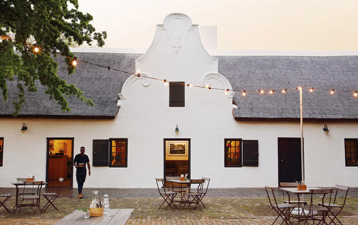 The restaurant overlooks the rolling lawns and ancient oaks of Spier’s meticulously restored Werf – perfect for the kids to run wild on. Sharing is encouraged, with family-style platters that can be ordered for the table.