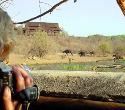 A suitably trained and qualified Professional Guide escorts guests into the hide, which is designed to look like a termite mound. This involves a short walk (5 minutes) from the lodge to the hide. Once hidden within, guests wait for a variety of mammal, reptile and bird species to visit the waterhole to quench their thirsts or to sample minerals at the nearby salt-lick.