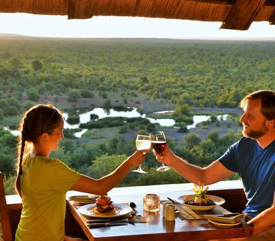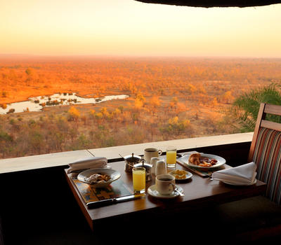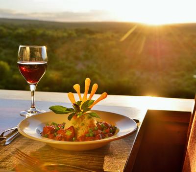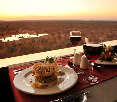 The split-level restaurant overlooks the lodge’s on-site watering hole that is often frequented by buffalo, elephant, warthog, antelope and colourful birdlife - the views alone guarantee a memorable meal. The view over the African bush at sunset is one not to be forgotten.