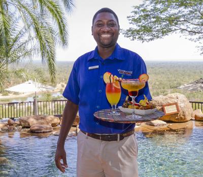 Like the waterhole itself, Buffalo Bar is the central hub of the area, with guests enjoying themselves all throughout the day and the evening. Enjoy cocktails here before going to dine at the Makuwa-Kuwa Restaurant upstairs, and come back down after dinner for drinks in the warm, convivial environment. The bar is also a convenient place to grab a light lunch in between your scheduled activities. Choose from a variety of salads, sandwiches and pasta dishes. Top beer brand Heineken named Buffalo Bar one of the Great Bars of the World, and as well as the magnificent views of the Zambezi River and pristine bushveld, you will find the staff to be warm, hospitable and professional. Buffalo Bar also has a wide drinks selection and fantastic house specialties and cocktails.