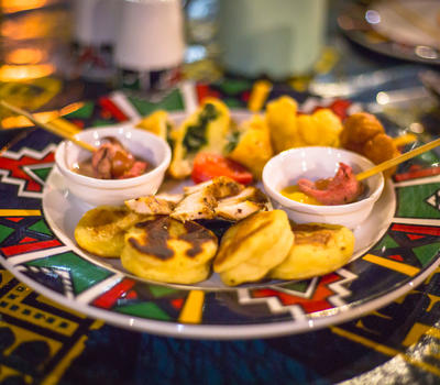 The food is cooked and served in the style and quantity of a lavish feast, including irresistible desserts, so prepare to eat your fill! If you’ve overindulged, though, don’t worry – you can work it off in the energetic drumming circle that starts at nine o’clock, which usually turns into an even more energetic dance party. If that isn’t your cup of tea, the restaurant also has a lively bar, and a relaxed lounge area for you to while away the rest of your evening chatting away.