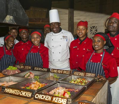 The starter menu is influenced by local ingredients and offers a unique selection of dishes, including Nyimo Beans, groundnuts, Kariba Bream (Tilapia) with smoked crocodile, and deep-fried Kapenta (Tanganyika sardines from Kariba).