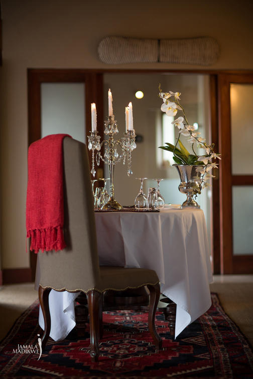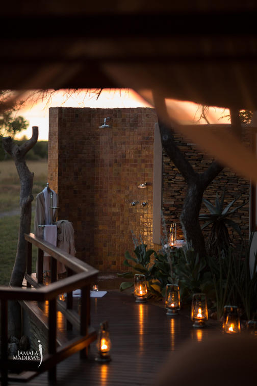 Beautifully appointed Villa 5 at Jamala Madikwe has incredible views from the wrap around deck over the African savannah plains. The Villa is situated furtherest from the main lodge and has all the amenities you would expect from a 5 star property and the privacy every honeymoon couple dream about. Villa 5 sits gently under ancient lead wood trees its seclusion and privacy rivalled by non perfect for Safari purist wanting to escape to the ultimate African hideaway.  Antique four-poster beds draped in mosquito netting paired with glass fronted bedrooms ensure that every waking moment is spent enjoying Africa and its wild inhabitants.