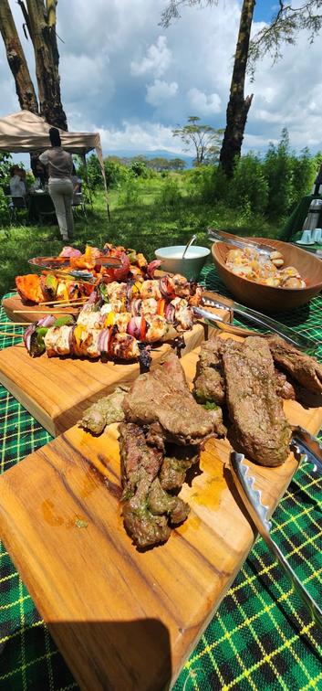 The menu is a culinary masterpiece, highlighting the finest flavors of East Africa. From succulent grilled meats to exotic fruits and savory delicacies, each dish celebrates local ingredients and traditional recipes. As you savor every bite, you are serenaded by the symphony of nature around you—the distant calls of exotic birds, the rustle of leaves in the breeze, and the occasional roar of lions echoing in the distance. It's a sensory feast unlike any other, where the awe-inspiring beauty of the natural world complements the food flavors.