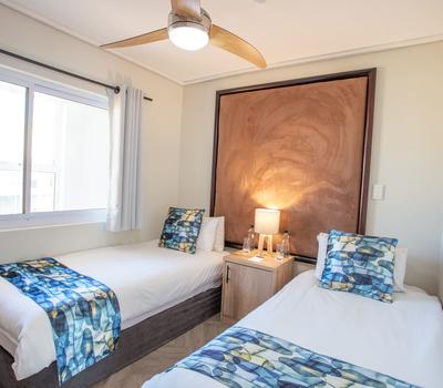 A standard two-bedroom apartment with en-suite bathrooms. and full sea facing views of the Atlantic Coast. Max. 6 persons. 92m2. King size Master bedroom, Twin bedroom.