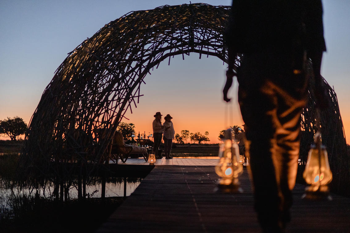 Un posto più classico per un aperitivo al tramonto nel Delta dell'Okavango potrebbe essere difficile da trovare.